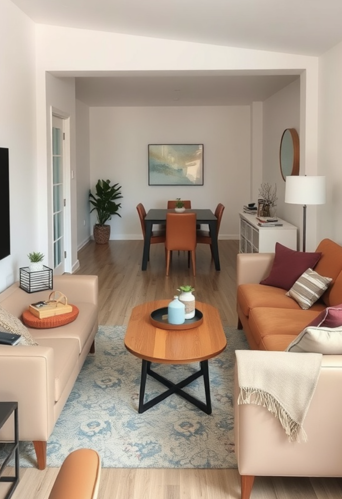 Mixing textures is a fun way to add depth to a small living room and dining room combo. Soft knitted pillows and cozy throws can create a warm and inviting space, while sleek decor items like glass vases provide contrast. This balance keeps the area feeling fresh and visually appealing.
