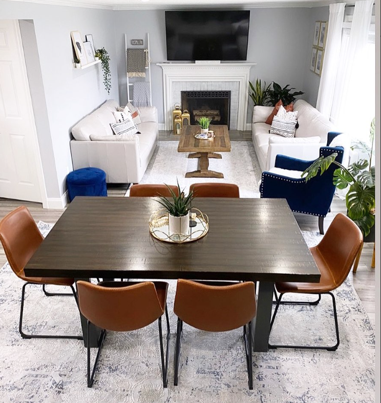 In a small living room and dining room combo, furniture placement is key to making the space feel open and inviting.