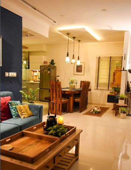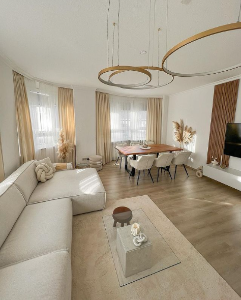 6. Warm and Airy Living-Dining Combo with Modern Touches