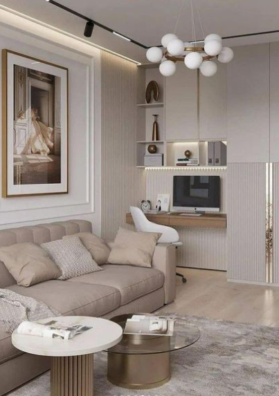 12. Elegant and Modern Living-Dining Combo with Workspace
