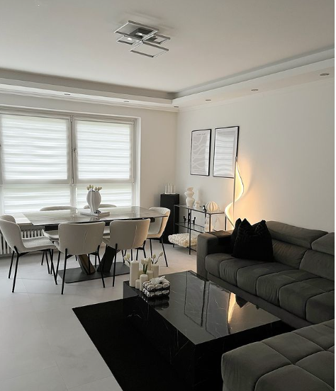 24. Sleek and Modern Monochrome Living-Dining Combo