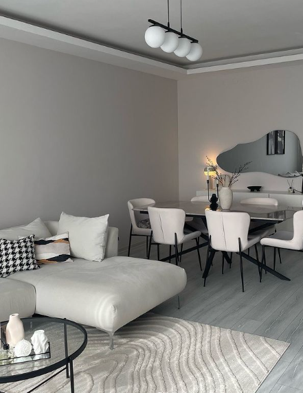 13. Sleek and Modern Monochrome Living-Dining Combo